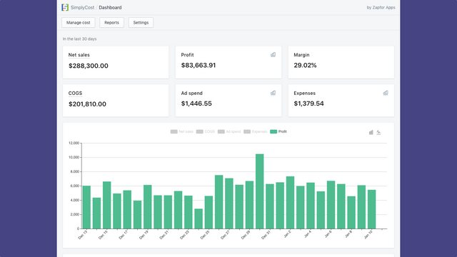 Let SimplyCost calculates your store profit automatically so you can view your profit reports anytime.