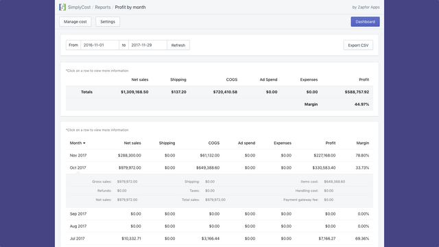 Let SimplyCost calculates your store profit automatically so you can view your profit reports anytime.